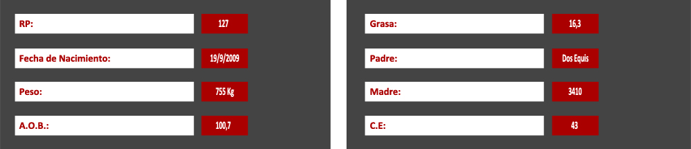Maní es un gran padre. Actualmente está siendo utilizado por Gran Campeón Expo Nacional Braford en Tacuarembó 2011. Reservado Campeón 2 años en Expo Prado 2011. Segundo Premio como Ternero en Expo Nacional Braford en Minas 2010. Tercer premio como Ternero en Expo Prado 2010.