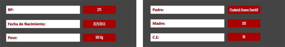 Tanque fue Reservado Campeón Ternero en el Prado 2013. Reservado Gran Campeon Macho y Campeón Ternero Expo Nacional Braford en Melo 2013.